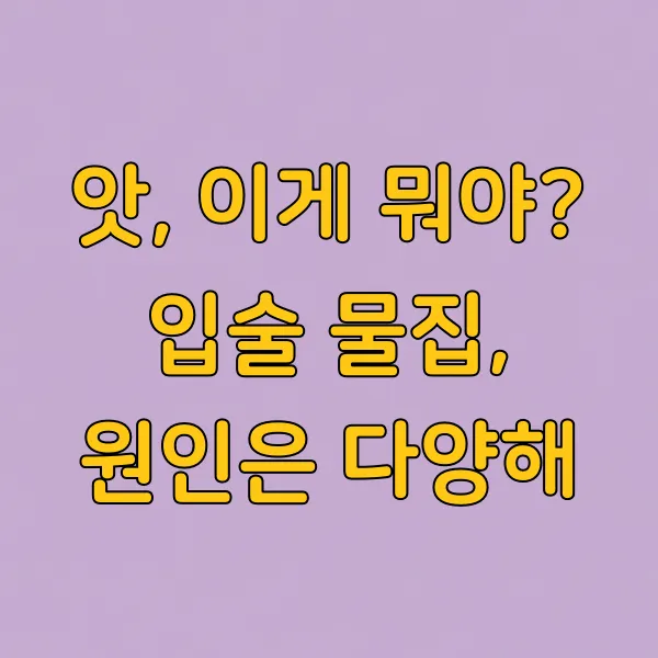 Q3. 입술 물집에 좋다는 민간요법, 효과가 있나요? A3. 과학적으로 입증되지 않은 민간요법은 오히려 상태를 악화시킬 수 있어요. 검증된 의학적 치료나 관리법을 따르는 것이 안전합니다.