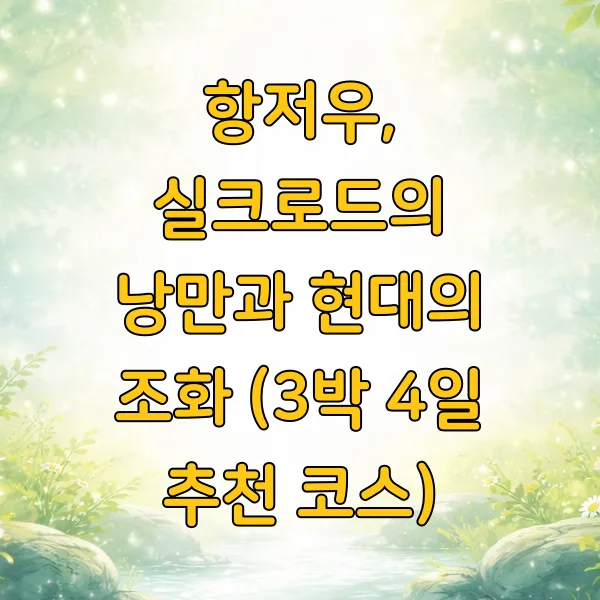 중국 항저우 하면 왠지 모르게 낯설게 느껴질 수도 있지만, 알고 보면 꽤 매력적인 도시거든요. 옛날 실크로드의 중요한 거점이었던 만큼, 낭만적인 분위기와 함께 현대적인 발전까지 두루 갖춘 곳이랍니다. 이번에는 항저우에서 꼭 가봐야 할 곳들을 3박 4일 일정으로 꽉 채워봤어요.