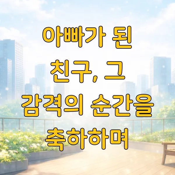 드디어 아빠가 된 친구에게, 축하한다는 말과 함께 앞으로 펼쳐질 새로운 세상에 대한 응원을 전해보는 건 어떨까요. 육아는 분명 쉽지 않겠지만, 그만큼 큰 기쁨과 보람이 기다리고 있을 테니까요.